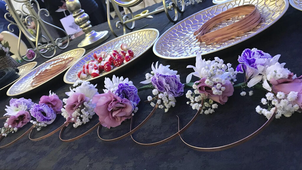 תכשיטים מפרחים: יצירת תכשיטים מפרחים אמיתיים, מוסיפים אווירה רומנטית ואלגנטית לאירוע.